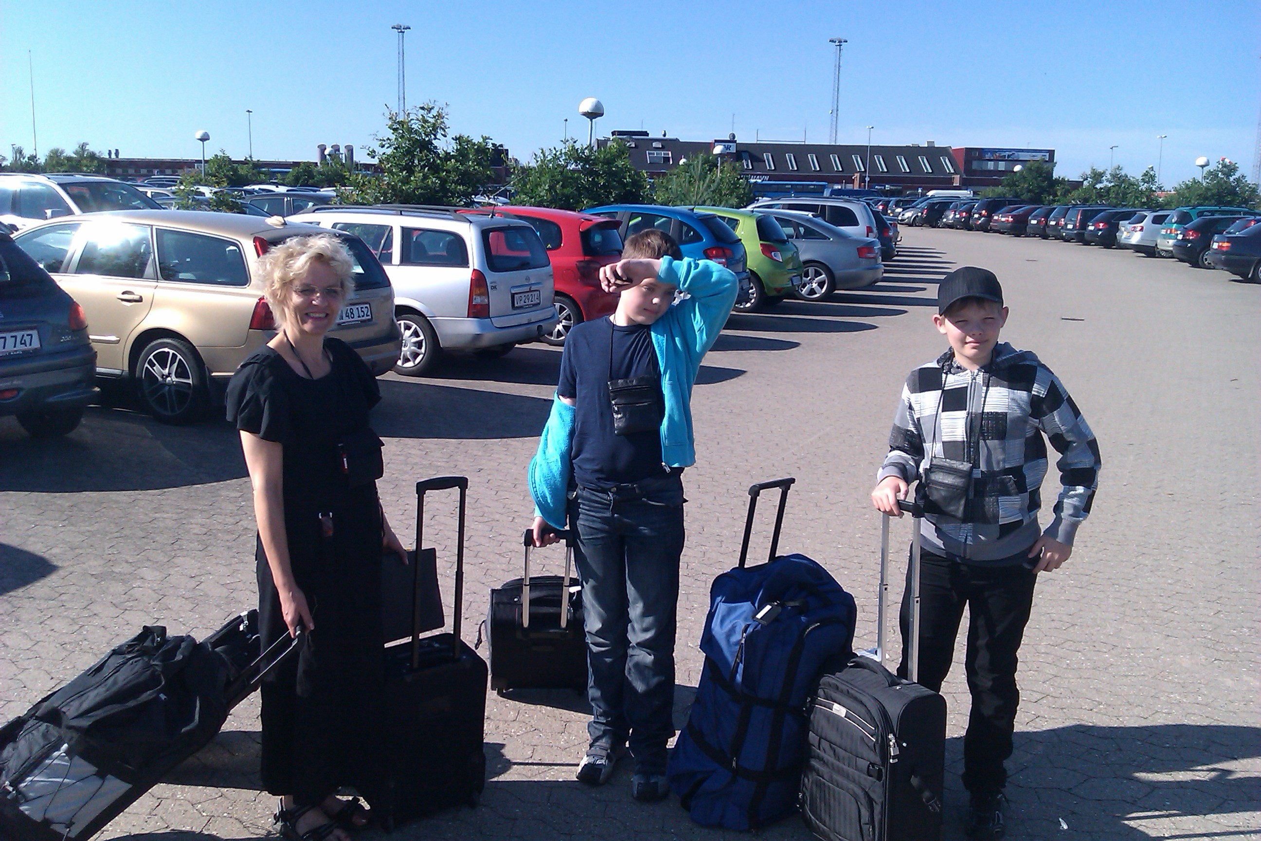Første punkt på programmet onsdag morgen var at sørge for det efterhånden anseelige antal ampler og altankasser, vi har bygget op i de seneste par år. De får Enghuset til at ligne en noget afdanket udgave af en østrisk alpehytte. Det kræver en del daglig opmærksomhed, pleje og omtanke. [Klar til afrejse] Muligvis anskaffet med årsag i tilsvarende forhold, der får andre forældre til at anskaffe sig hund, når børnene er ved at være store. Amplerne blev hængt op i den sprit-nye tagrende i håb om, at der så ville komme væde ned fra oven. Vi kørte til Tirstrup kl. 8.30, hvilket var i udmærket tid.